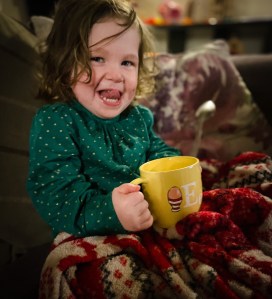 She loves Peter Rabbit, imaginary play, being outside, eating everything in sight, and sitting under blanket with a cup of tea.