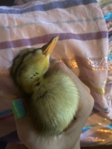 Because they are not feathered yet, so don’t have natural waterproofing (and no mama duck to provide it for them) we have to make sure they are nice & dry after their swims so they don’t get ill. Eira enjoys the chance to get up close with them during this!