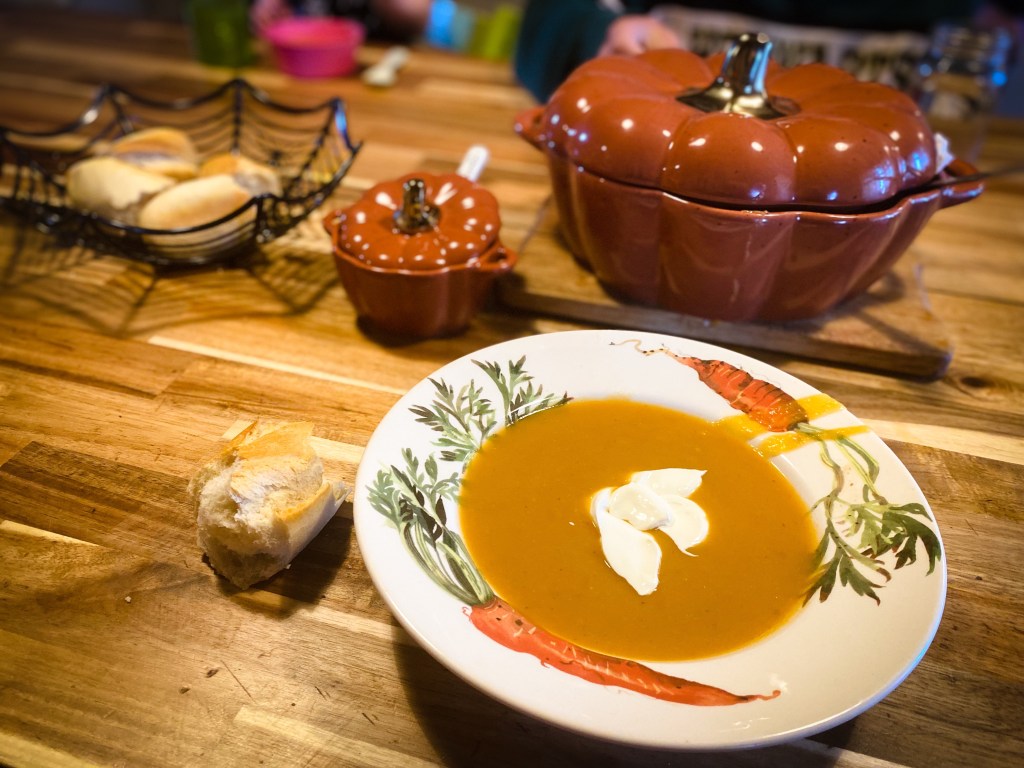 Everyone started the day watching a Halloween movie while I prepped lunch. I found a couple of bags of pumpkin flesh in the freezer from last year and so made my famous Thai Pumpkin Soup. It really is famous in our house as the children LOVE it!