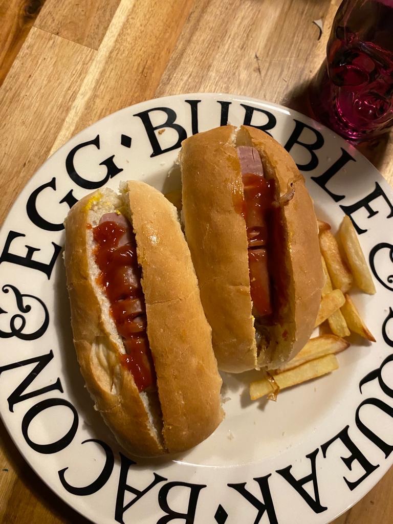 Dinner was something we don’t have very often – hotdogs! I’m not keen on the nutritional content but as we’d had a healthy lunch I figured it balanced out for one day! These frankfurter type sausages are great to carve & add ketchup, to make them look like bloodied fingers for a fun & cheap dinner!