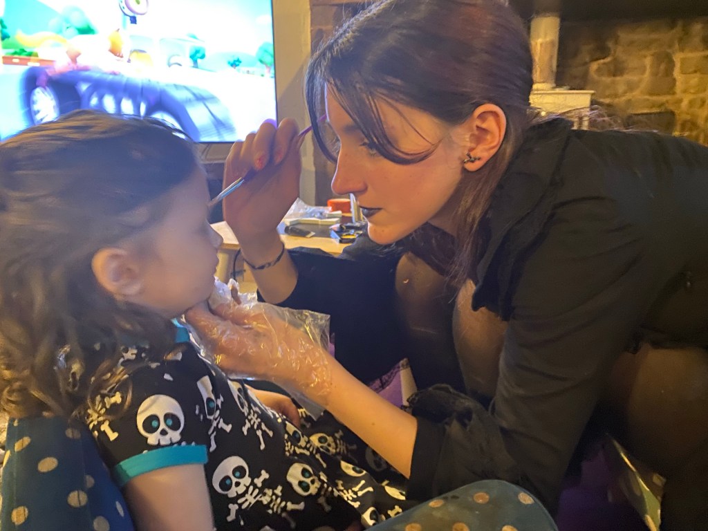 I also found a face painting kit from a previous year, and as Willow was keen to practise her skills, she set up a face painting table and did each of the little ones faces.