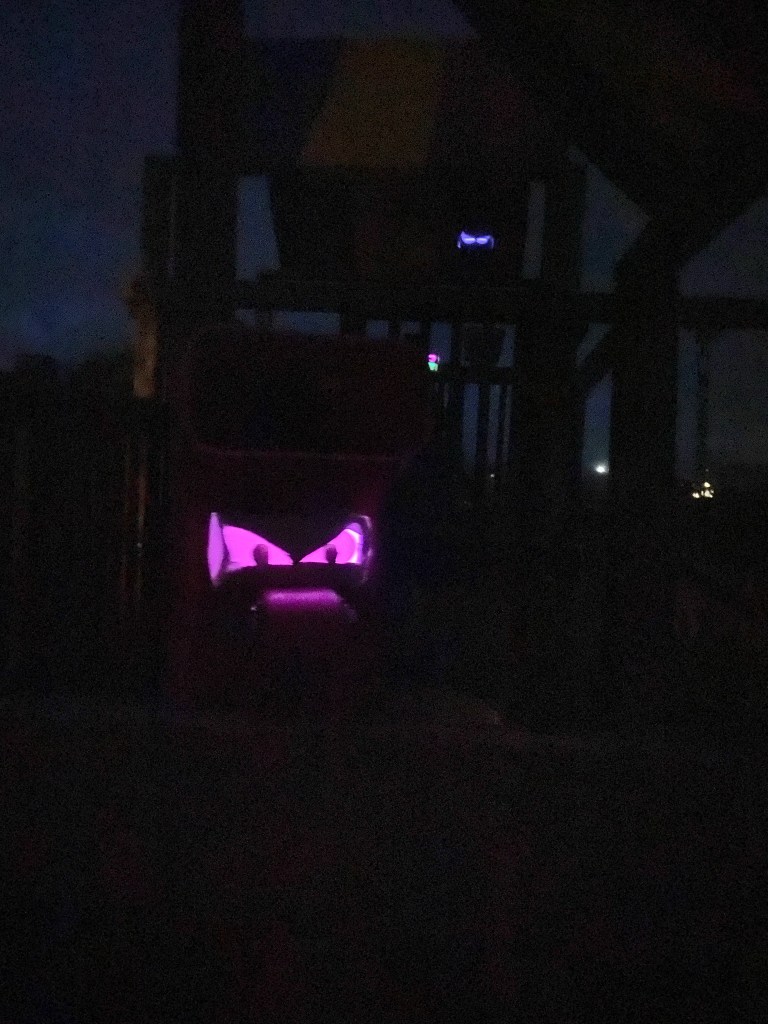 It was dark by this point, so getting any good photos was impossible – but the eyes were very effective! On my instagram feed I have a reel from that night which shows everything much better if you are interested!